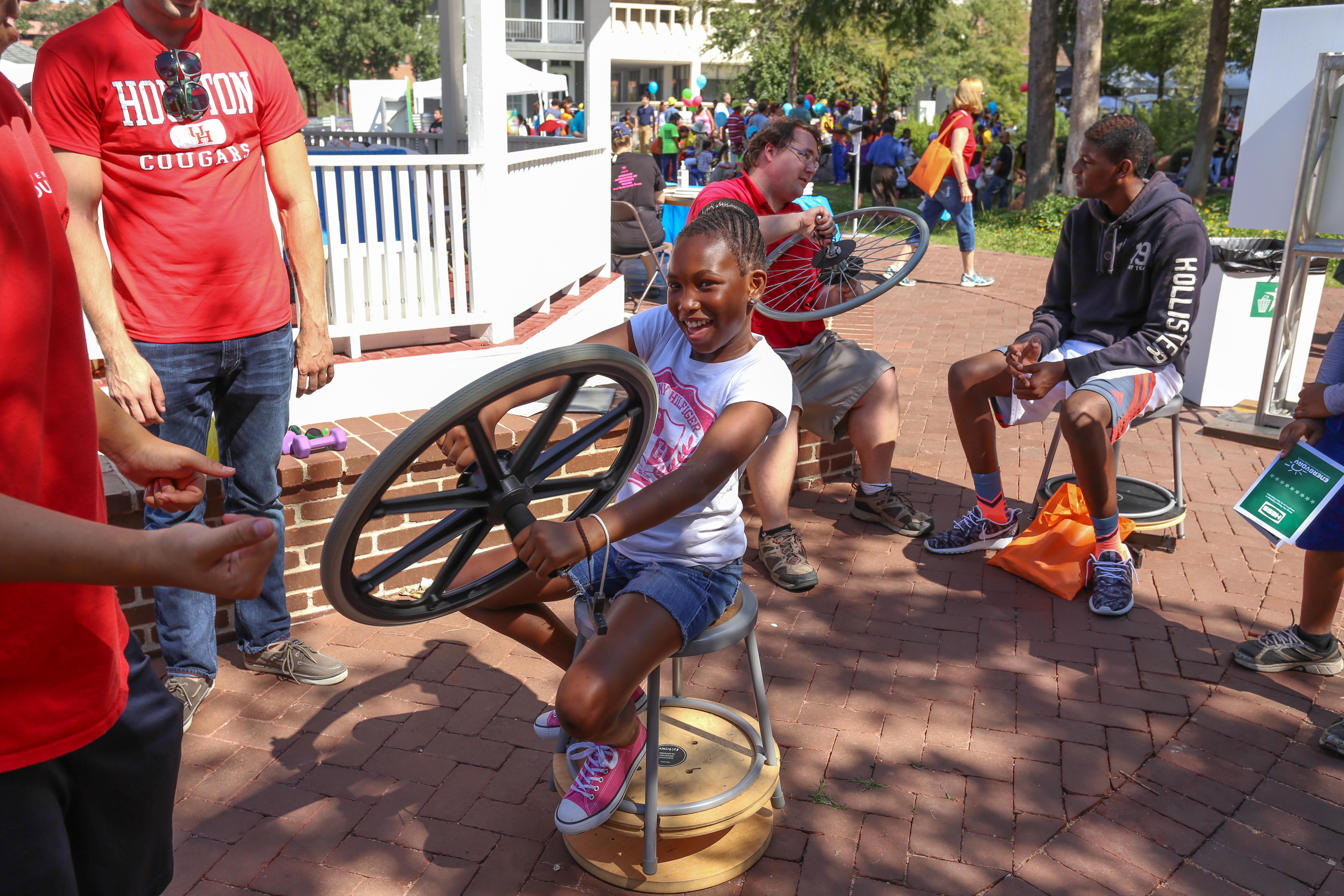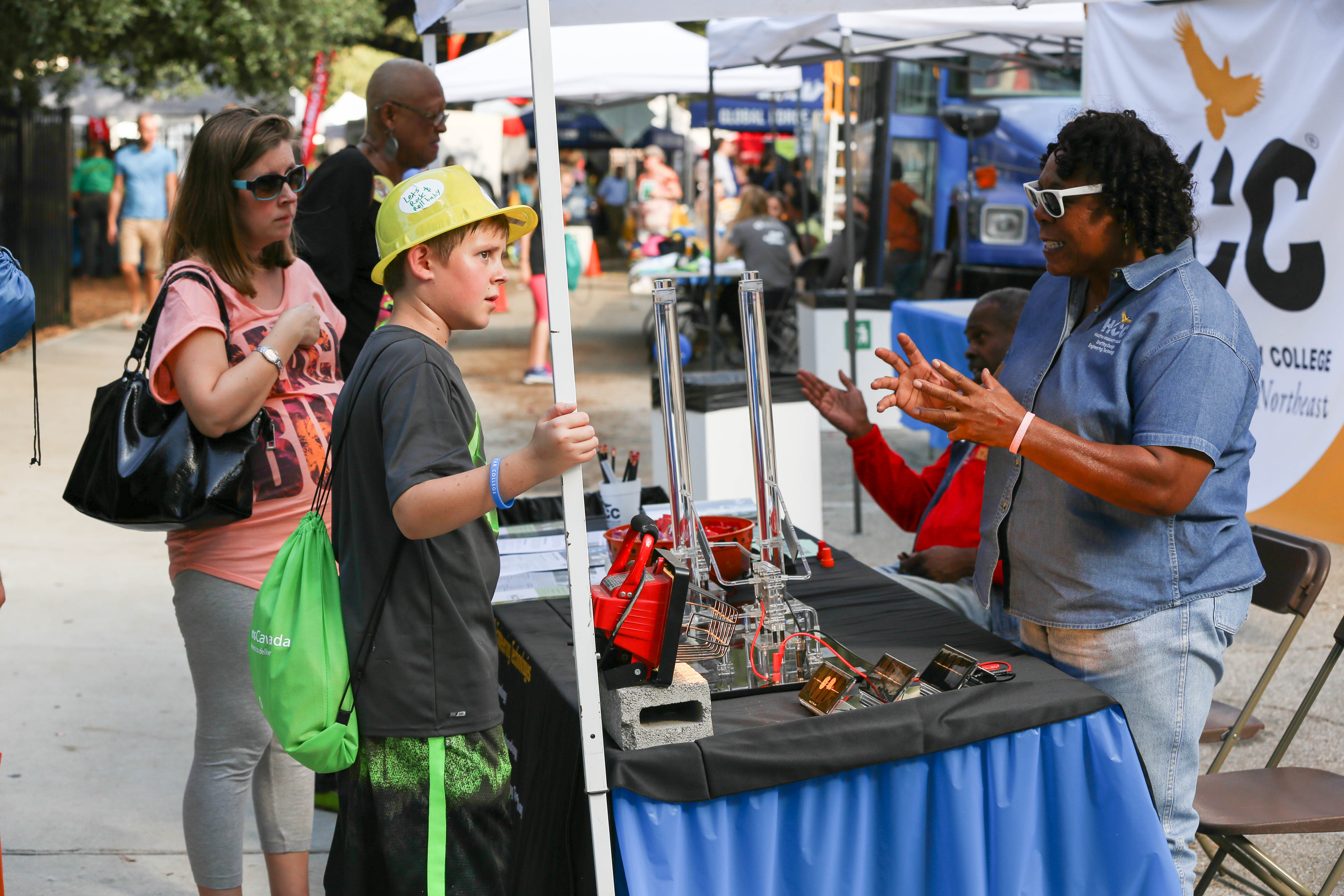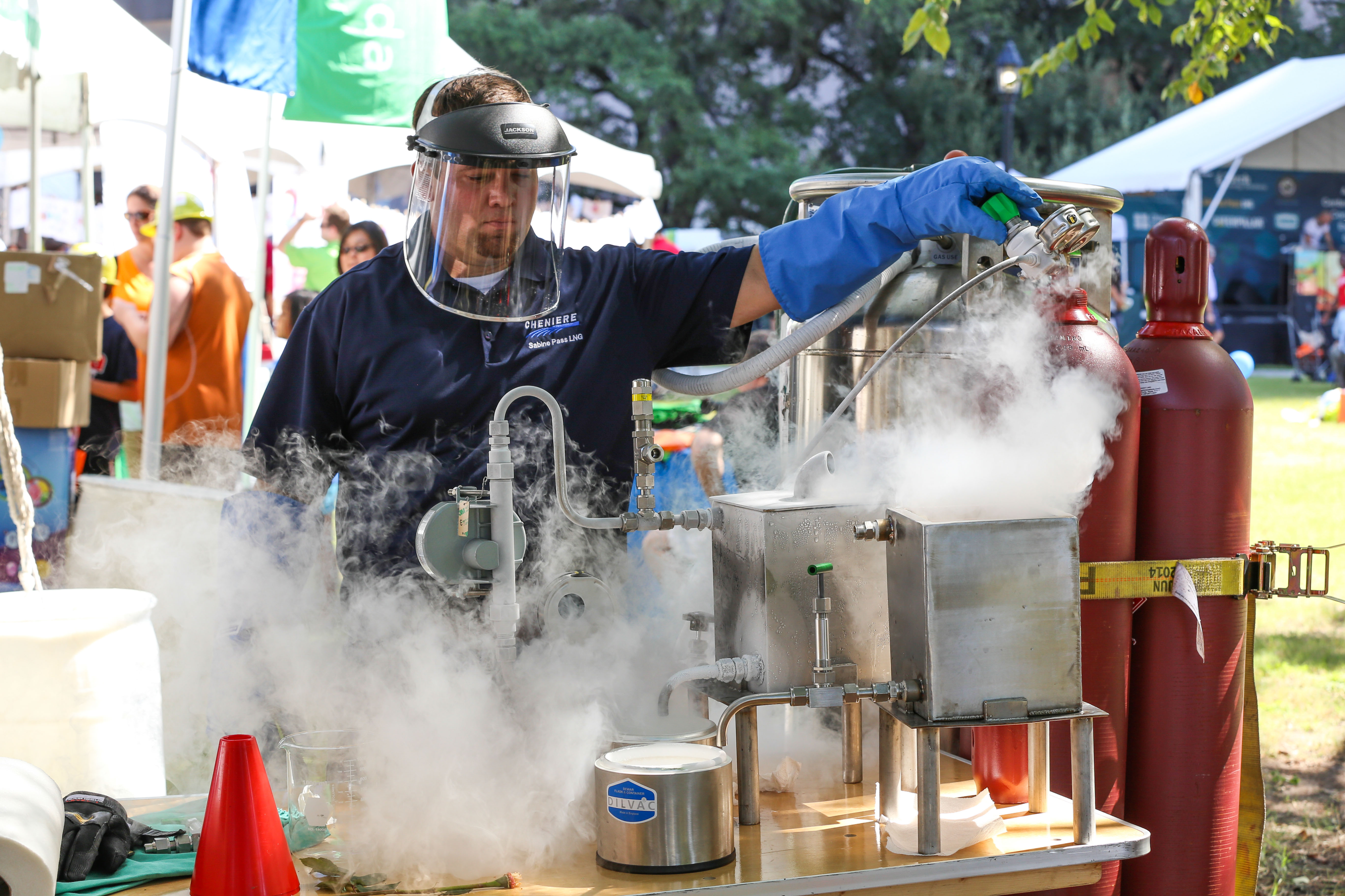 Twenty five thousand people turned out Saturday, along with more than 70 exhibitors, to applaud dozens of Houston area teachers and students who were recognized at the fourth annual Energy Day Festival. Thousands of festival-goers viewed exhibits on a range of STEM (Science, Technology, Engineering and Mathematics) topics including demonstrating the process of liquifying natural gas, showcasing prototype hybrid vehicles, and a simulator for naval Remotely Operated Vehicles.