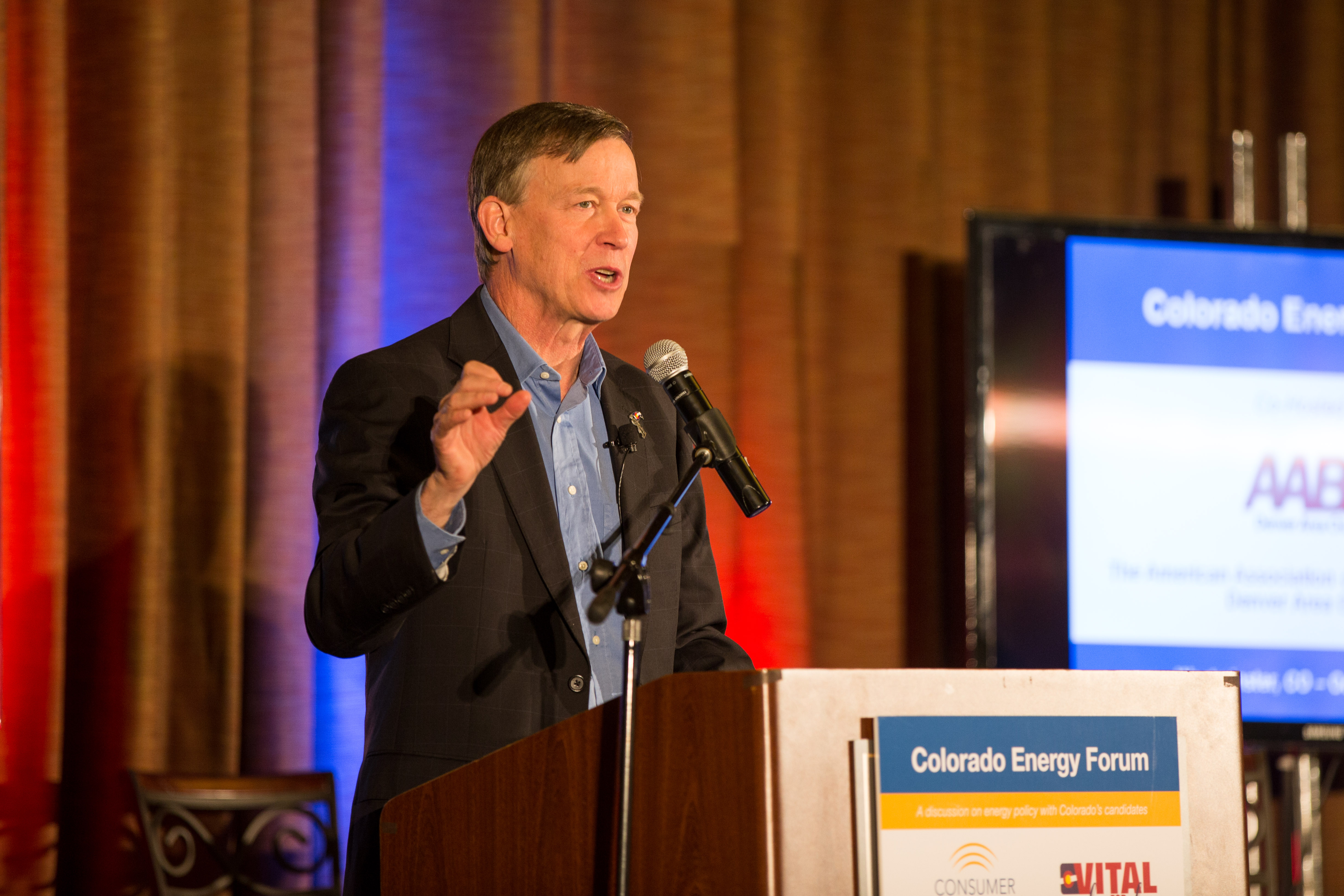 U.S. Sen. Mark Udall and Gov. John Hickenlooper shared the stage with their challengers, U.S. Rep. Cory Gardner and former U.S. Rep. Bob Beauprez, to lay out their vision for how Colorado’s energy consumers can benefit from natural gas, oil, and wind energy.