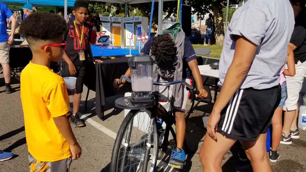 When Nancy Kreitler saw an advertisement for Energy Day she knew where she wanted to take her grandchildren Saturday. Part of her reward was a strawberry slushy her 8-year-old grandson, Rhys Kreitler, produced using pedal power — a blender hooked up to a stationary bike ground the ice as the wheels turned.