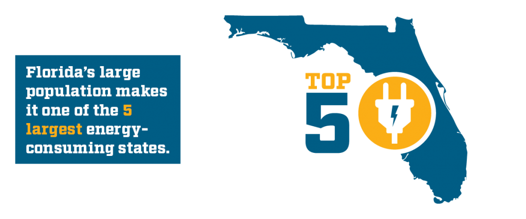 With everything Florida has to offer, it is sometimes easy to forget just how much energy all this requires. The population alone means millions of homes need to be cooled during the hot summers, phones need to be charged, cars need to be fueled to drive to the beach, refrigerators need to be powered to keep locally-produced orange juice cold – and much, much more. And as more than a hundred million tourists from around the world descend on Florida, it is no surprise that the state demands more energy than it produces.